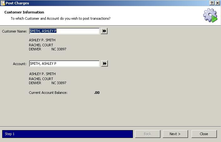 4. The Patient Scan displays. Double-click the name or press the corresponding function key for the patient who has charges to post to their account. Post Charges displays with customer and account details:
