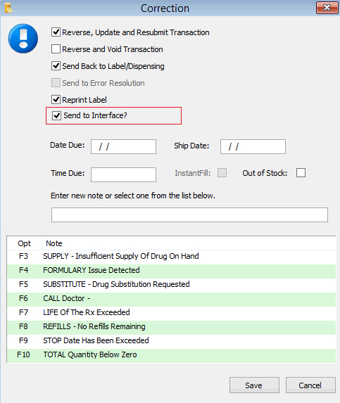 When the Send to Interface option is checked, the System will send a Discard message to the device before the Transaction is updated. Once the Transaction is updated, the updated information will be sent to the device with a Fill message. When the option is unchecked, the Discard message will be sent to the device; however, the Fill message will not be resent.