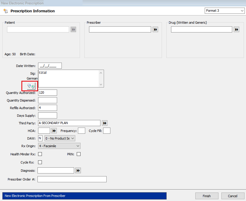 RxTran Button for Prescription Formats 1 - 3 for e-Prescriptions