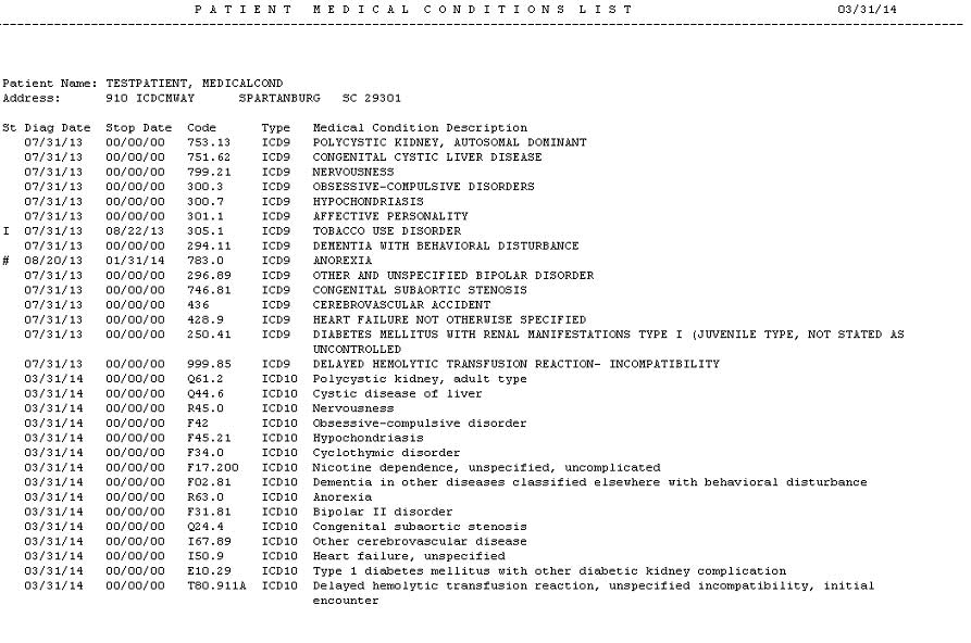 Updated reports to support ICD-10 Codes. Added the report, Patient Medical Conditions List, to the Patient report menu. Click here for Select, Sort and Print Options. Click here for a sample report.