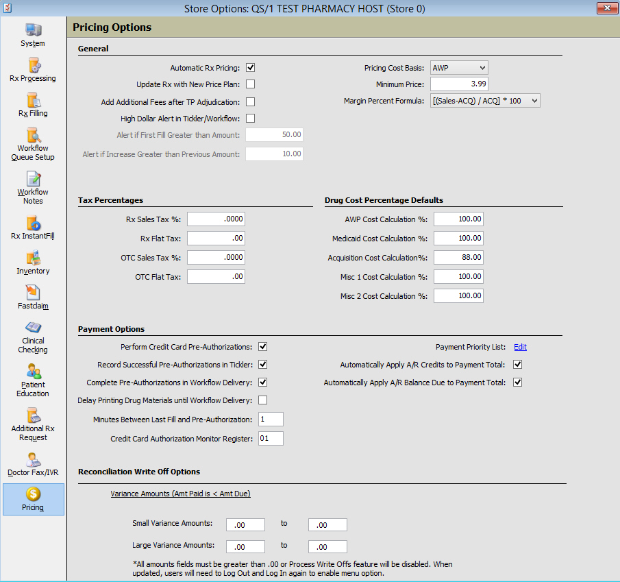 | Minimum Price | Type the minimum price to charge for all prescriptions. |